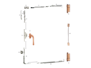 配件執(zhí)手、合頁可通過調節(jié)適用于左、右式門窗。